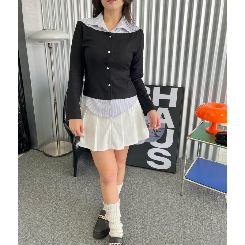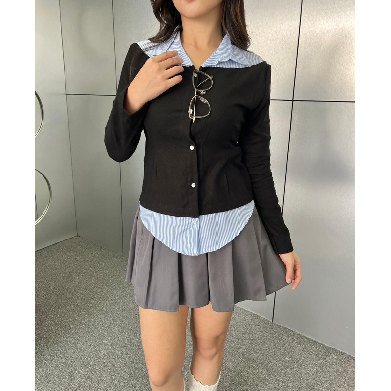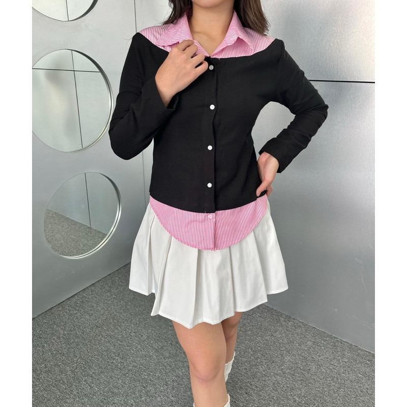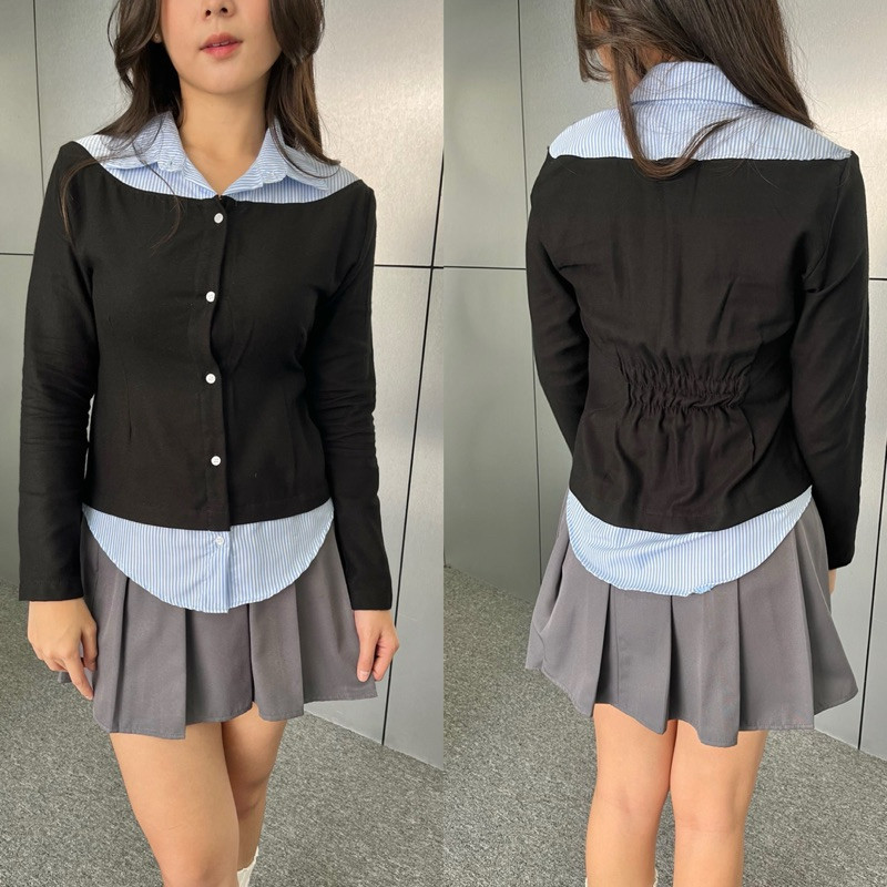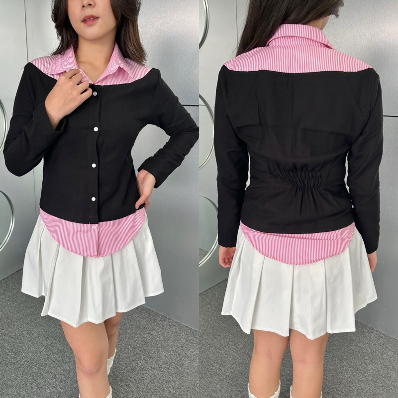 Missie – Audrey Kemeja Blose wanita Slim Fit Long Sleeve Kombinasi 2 Warna