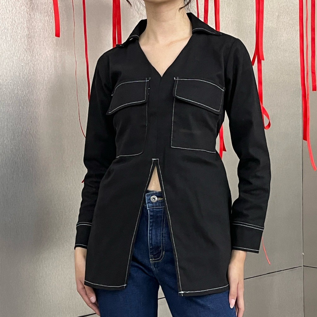 MISSIE Bianca Chinos Slim Shirt Kemeja Bahan Tebal Lembut Stretch