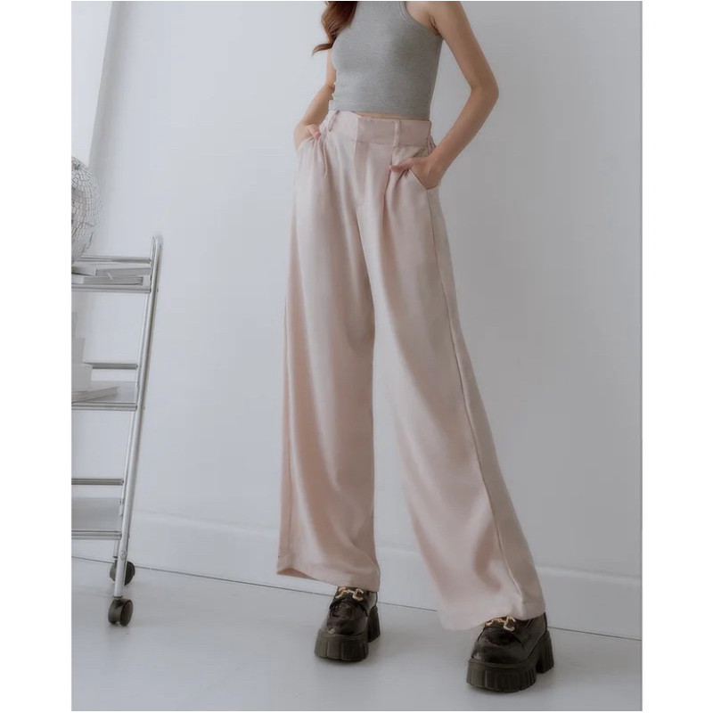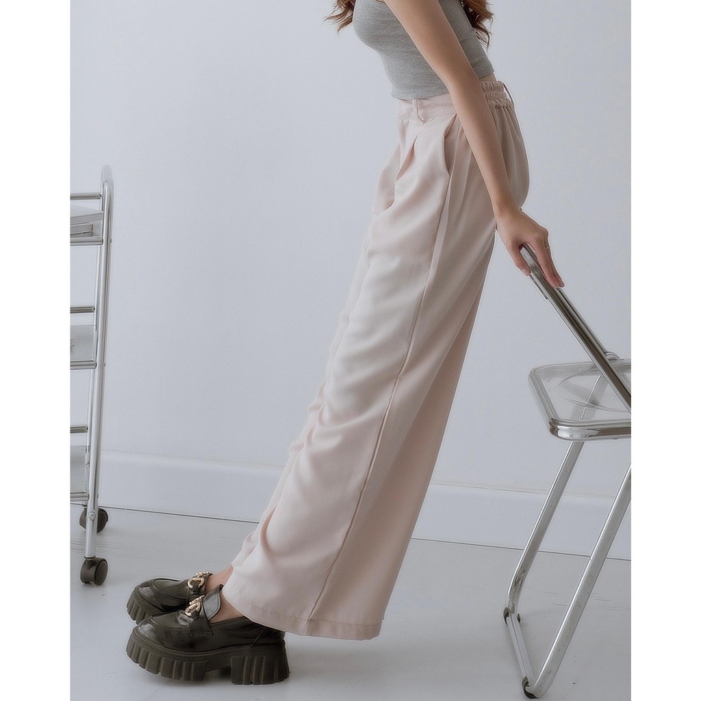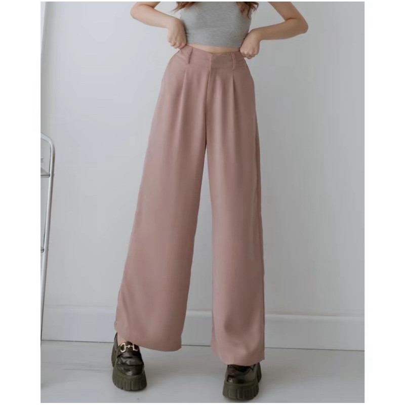 Celana Flowy, karet belakang so fit di pinggang, dengan dua lipatan pada bagian depan, belt loop, resleting YKK, Double high quality hook and eye.