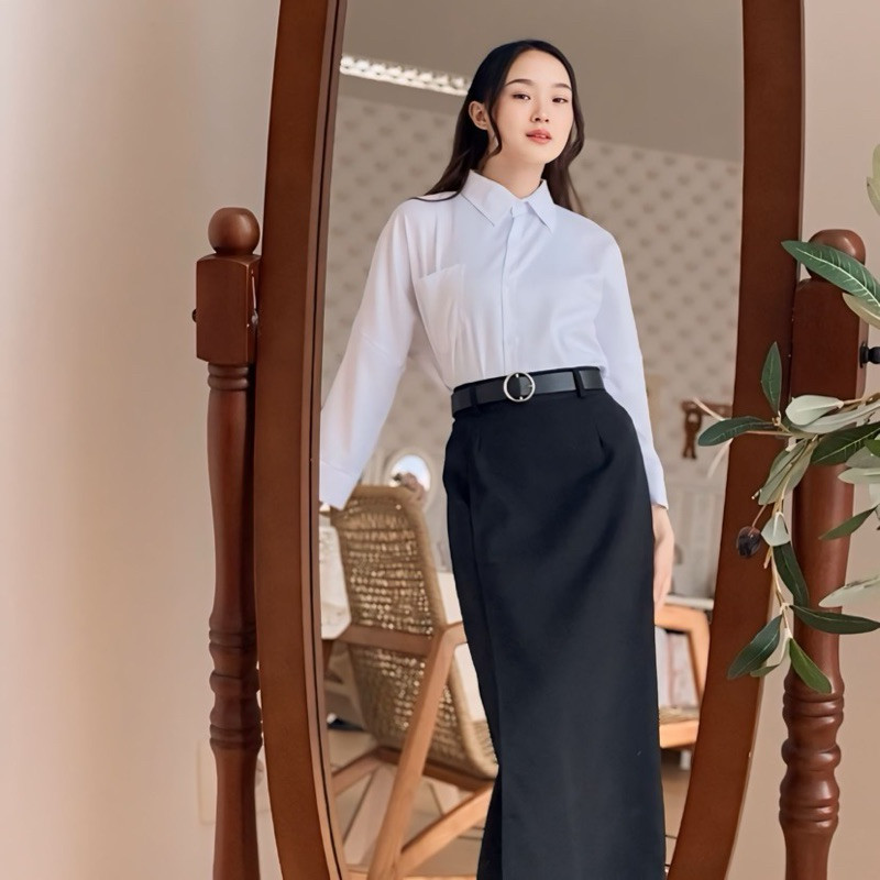 Missie - Elanor Kemeja Blouse wanita Slim Fit Long Sleeve Kombinasi 2 Warna