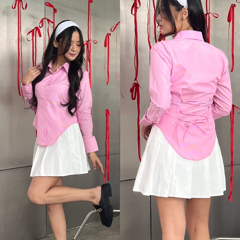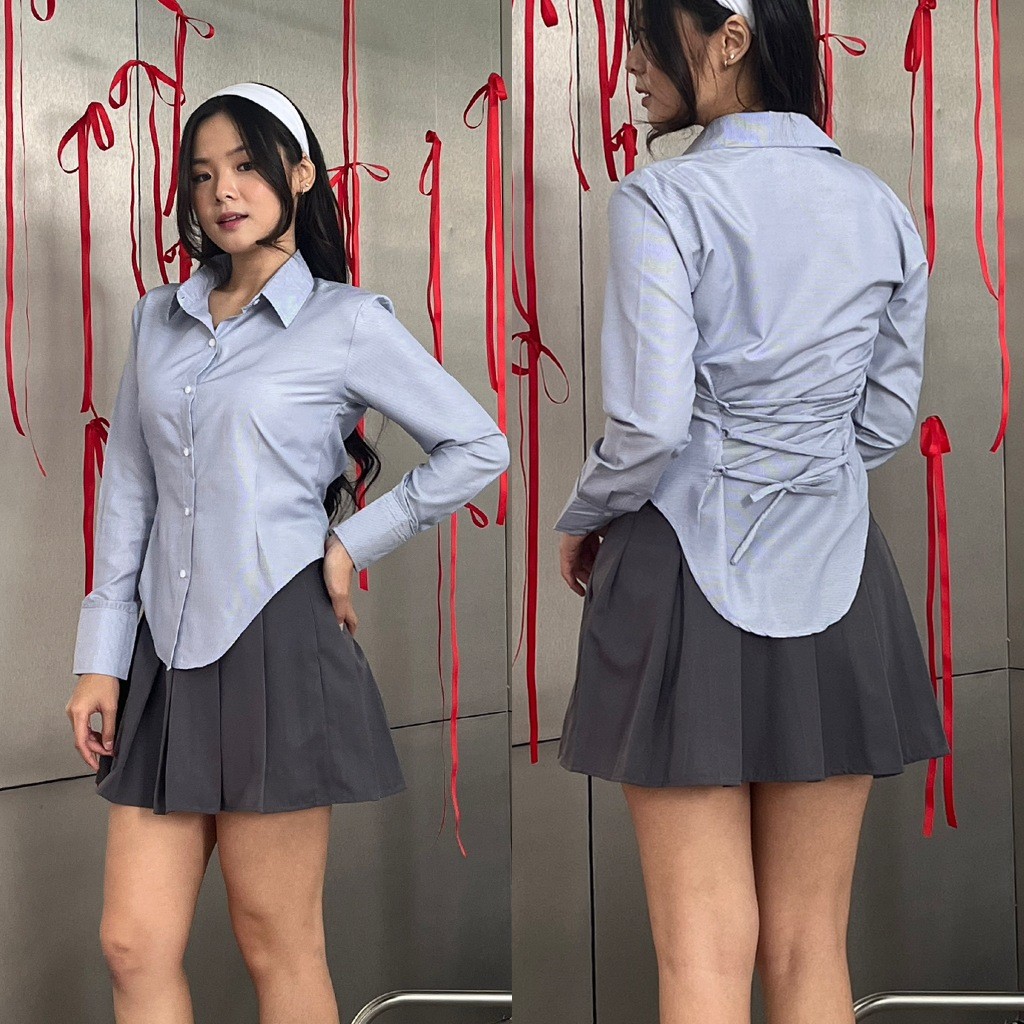 Missie – Selena Kemeja Blose wanita Slim Fit Long Sleeve tali belakang